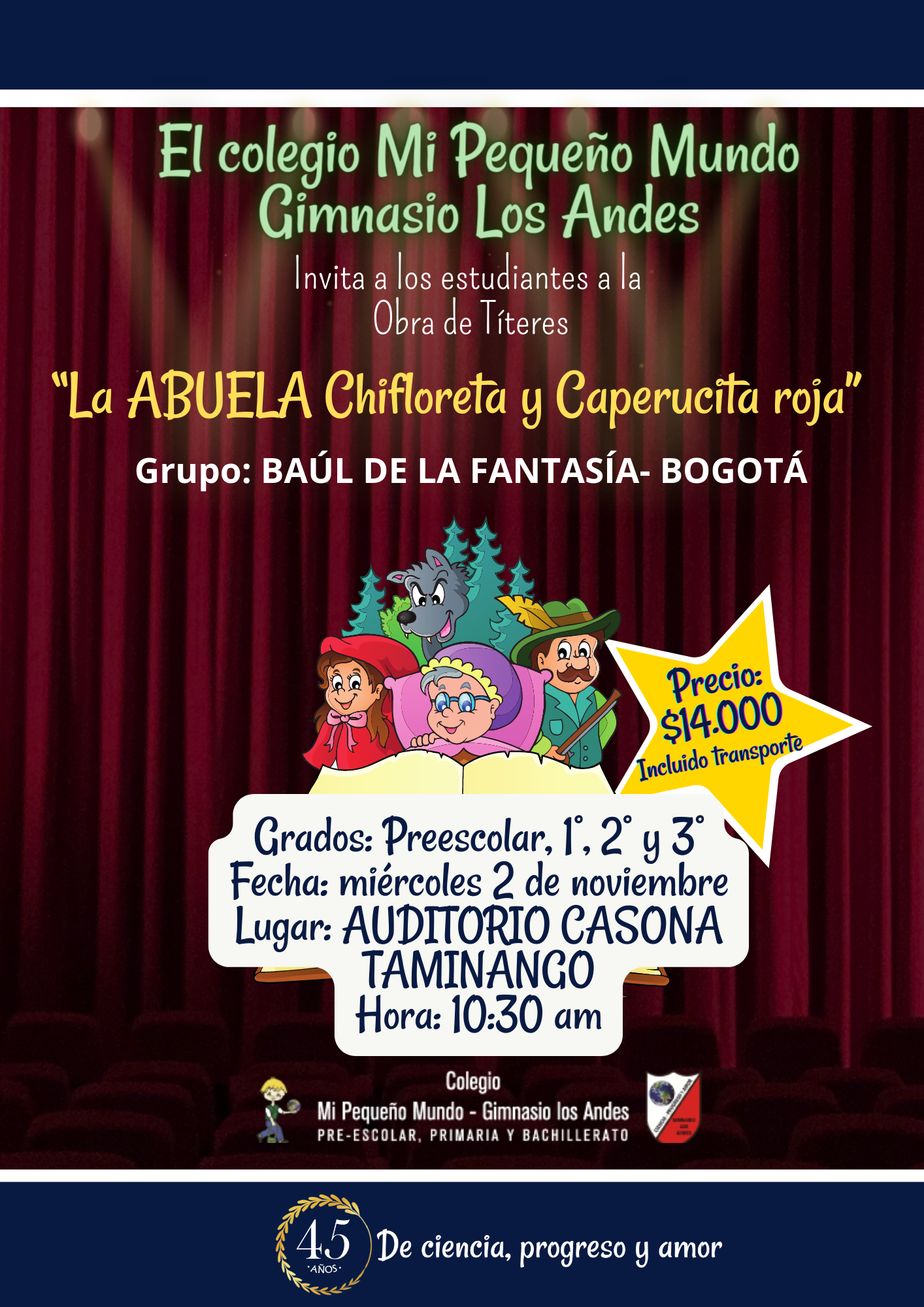 El Colegio Mi Pequeño Mundo Gimnasio Los Andes llevo a cabo el evento denominado: Parranda de Navidad, con más de 100 estudiantes en escena, donde se dio un muestra de los ritmos más tradicionales alusivos a la época de Navidad. Una noche maravillosa que vivió en el teatro San Felipe Neri de la ciudad.